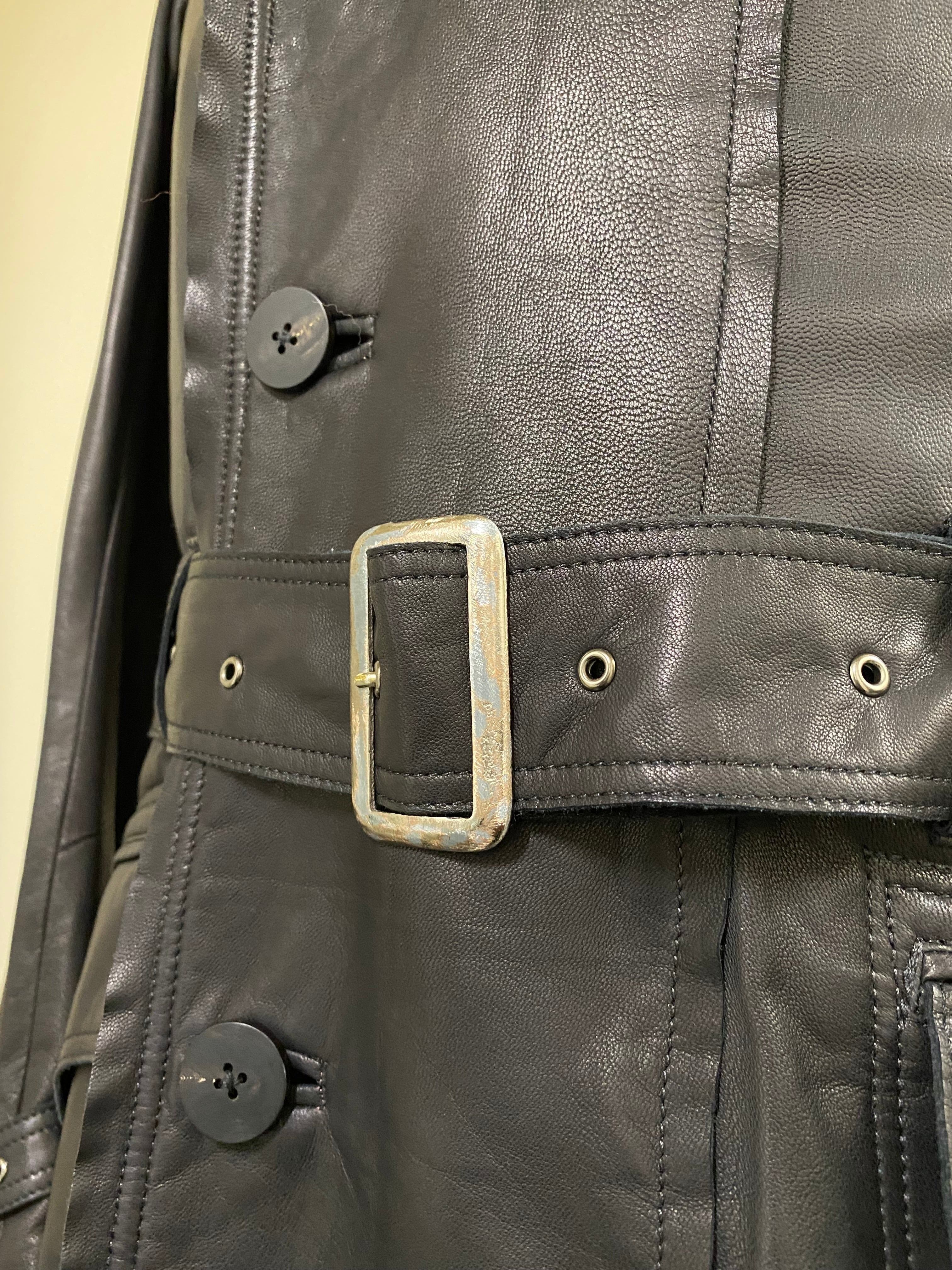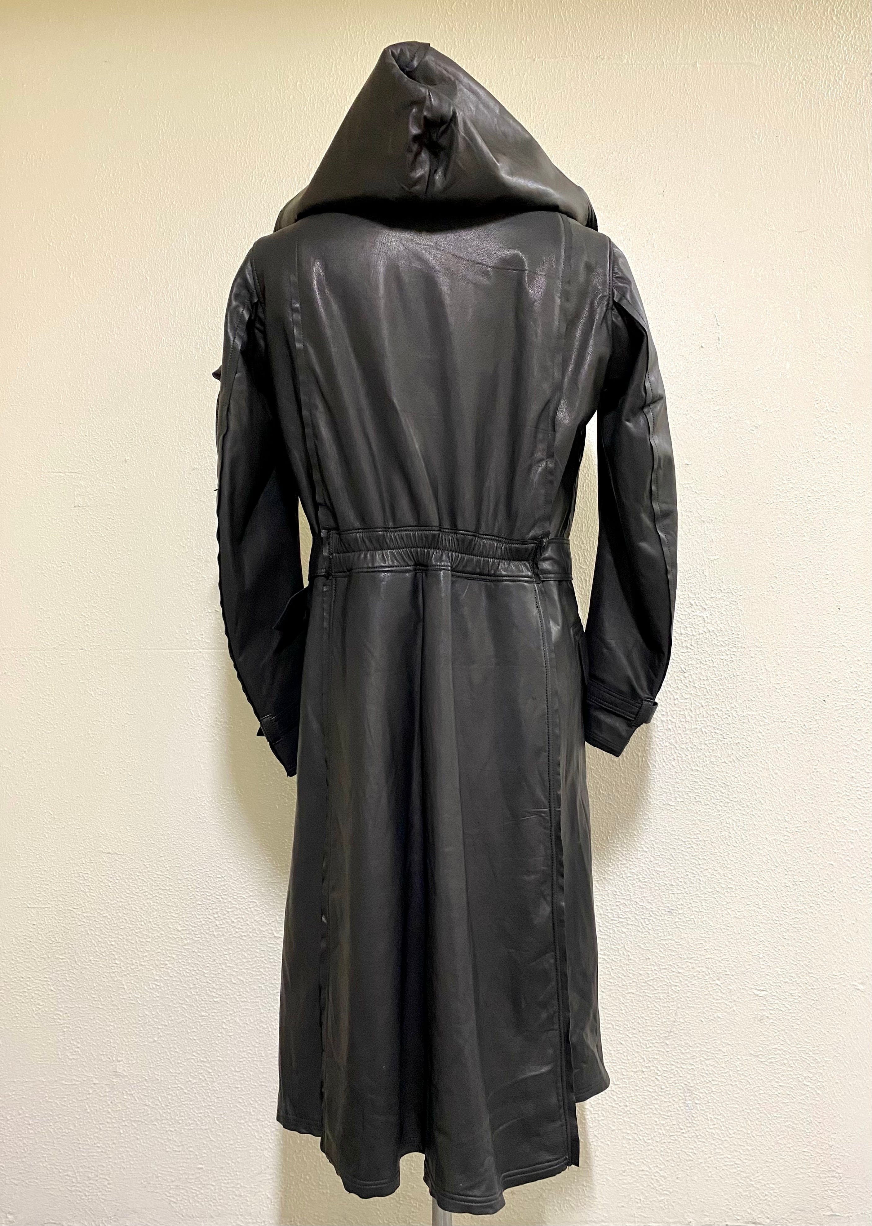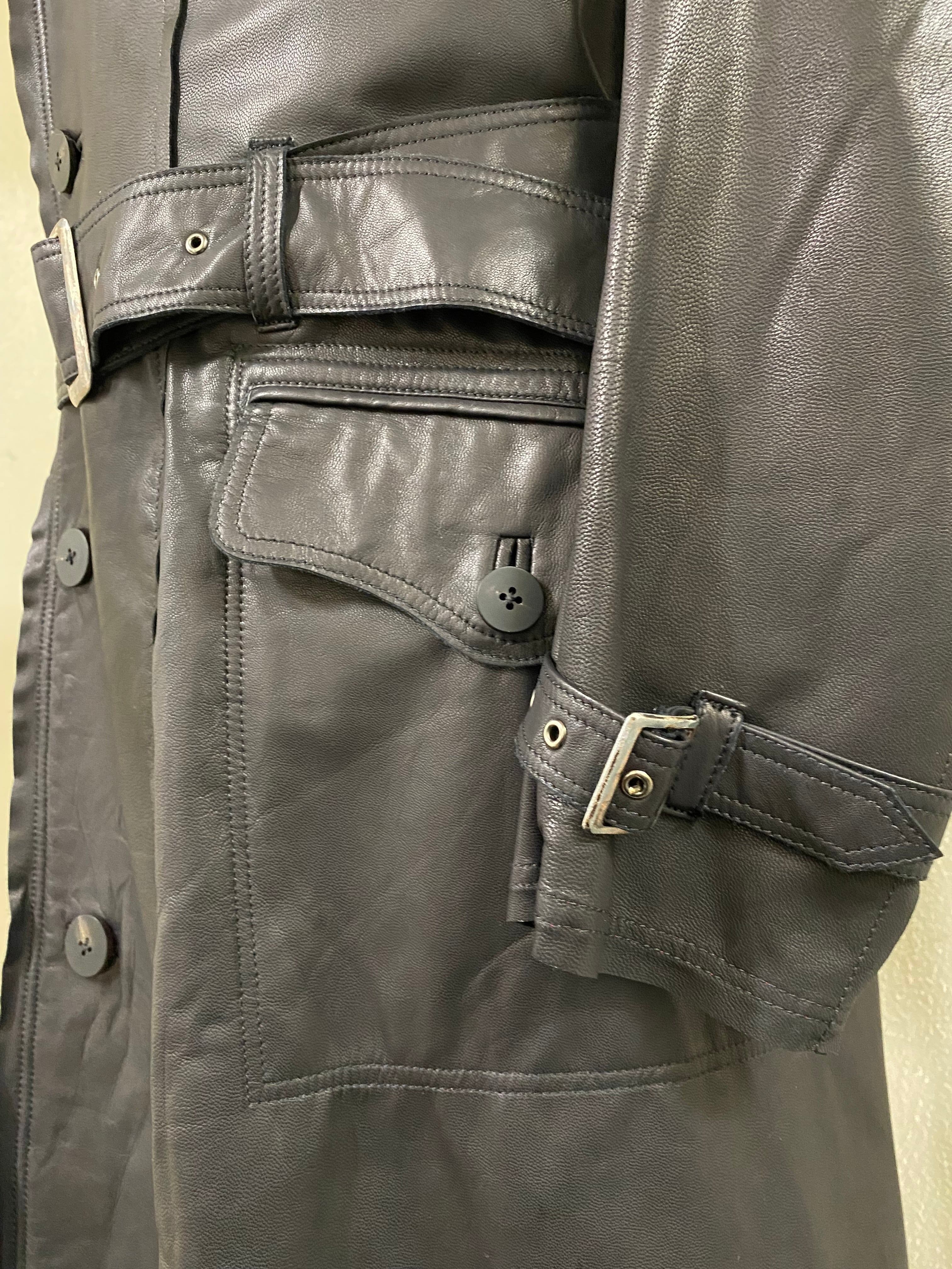 表はGoat leather (ヤギ革) 、内側にはバージンウールを使用した、あたたかなロングコート。