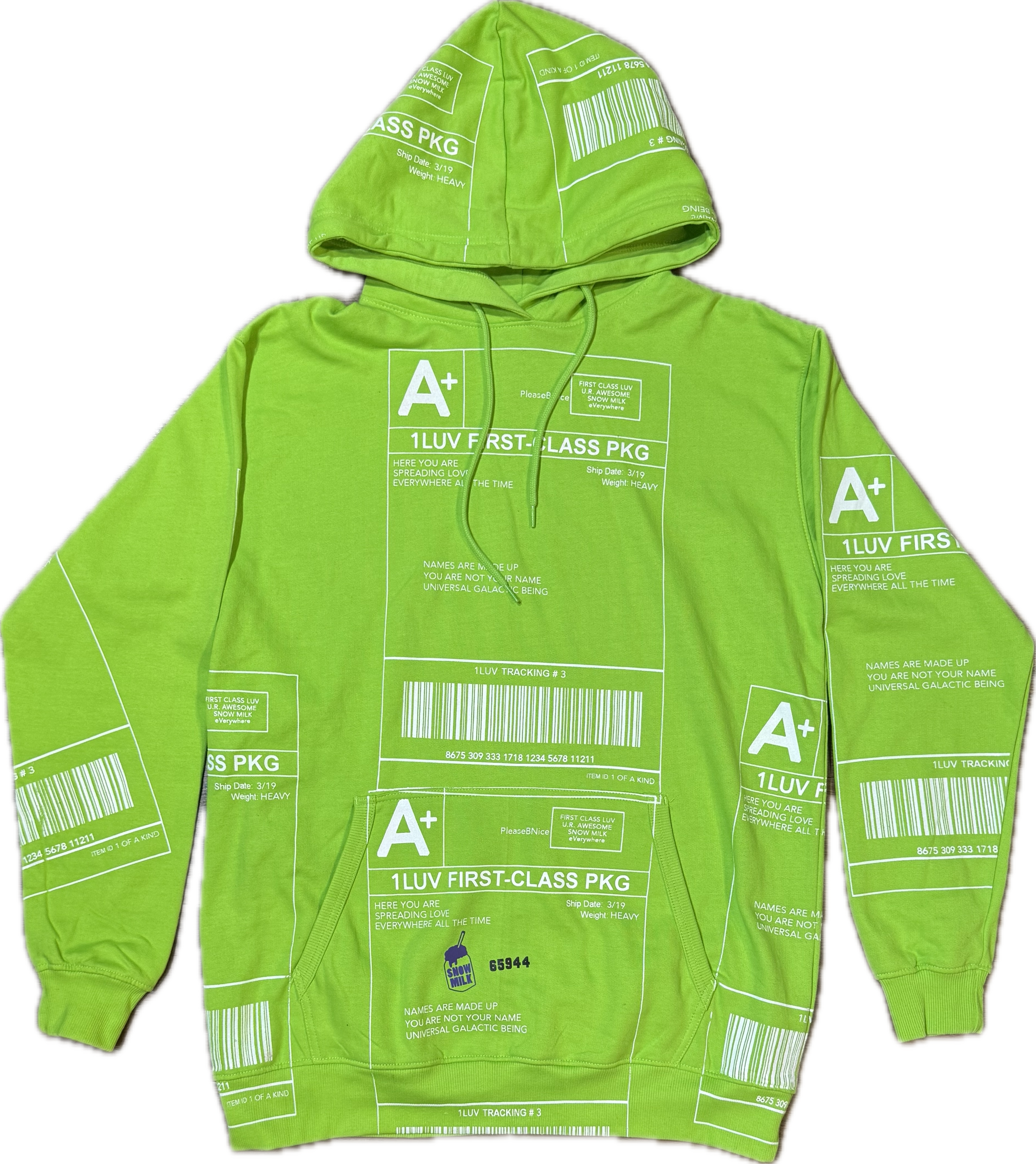 "Snow Milk" Positive Shipping Label フーディー (Size XL)