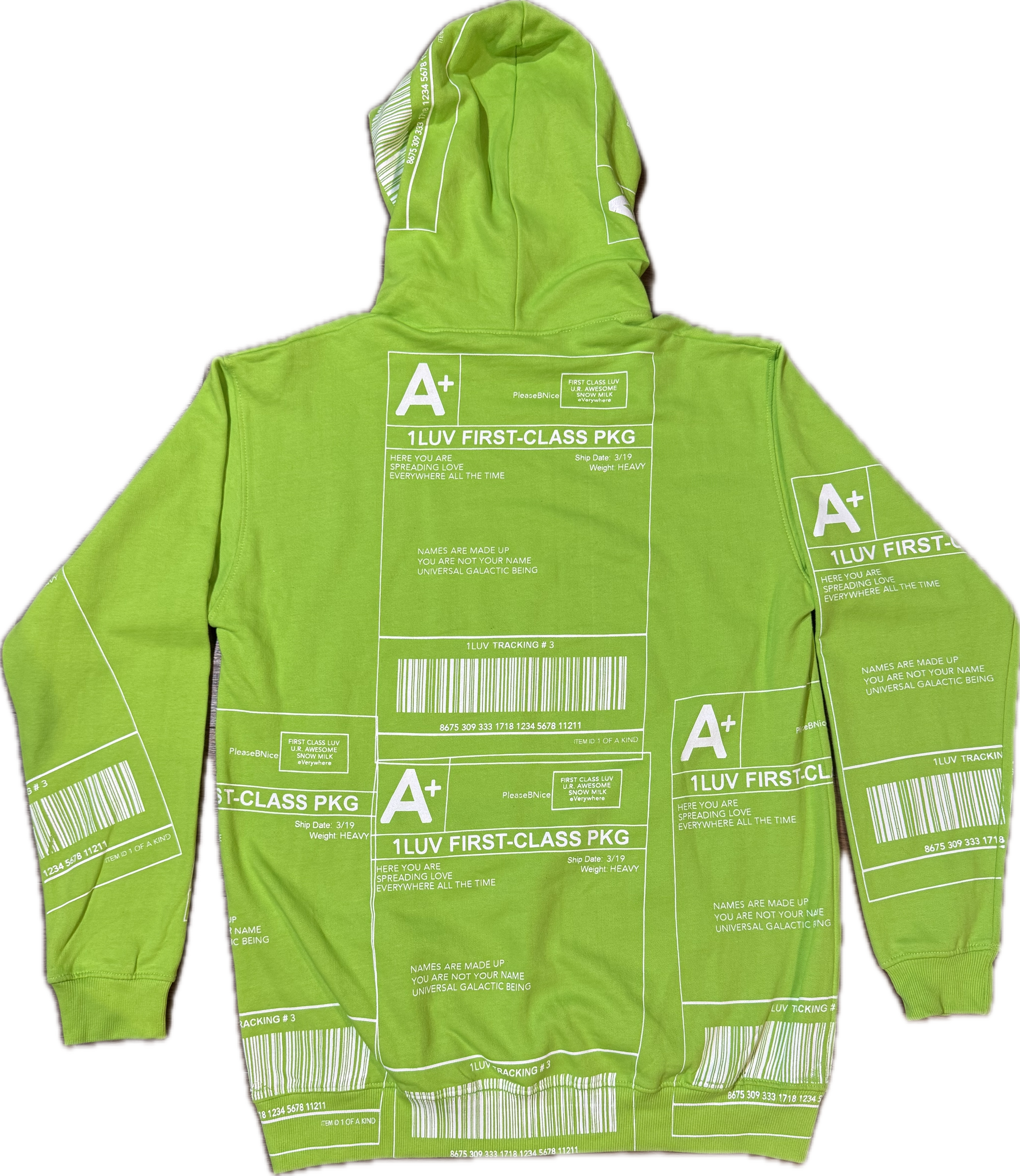 "Snow Milk" Positive Shipping Label フーディー (Size XL)
