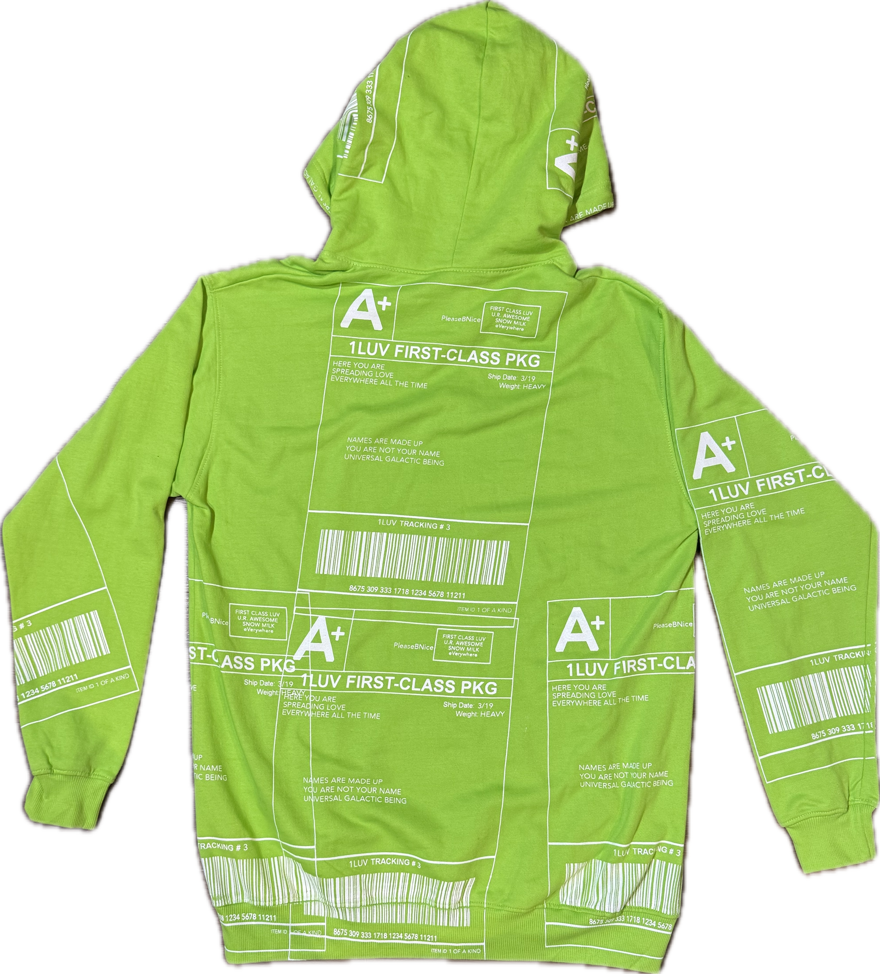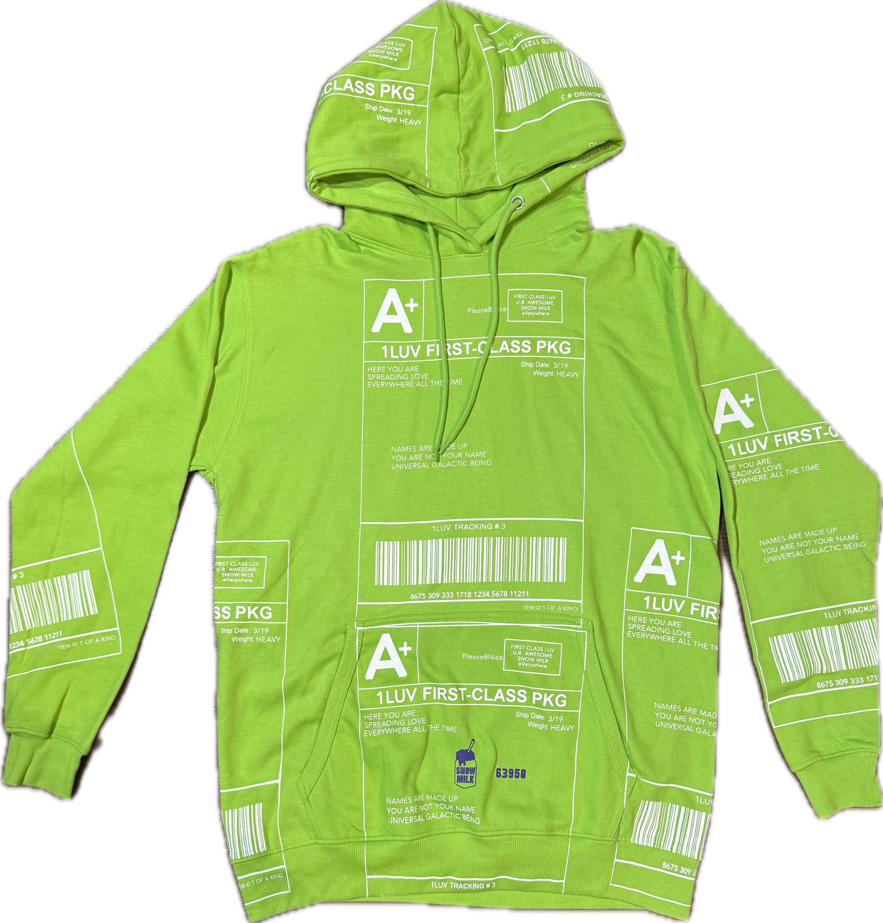 "Snow Milk" Positive Shipping Label フーディー (Size XL)